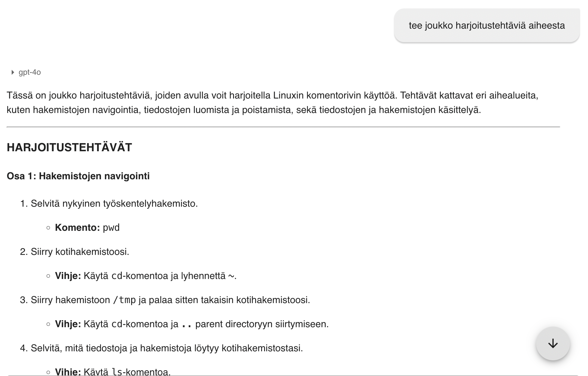 AI:ta voi myös pyytää generoimaan tehtäviä aiheesta: